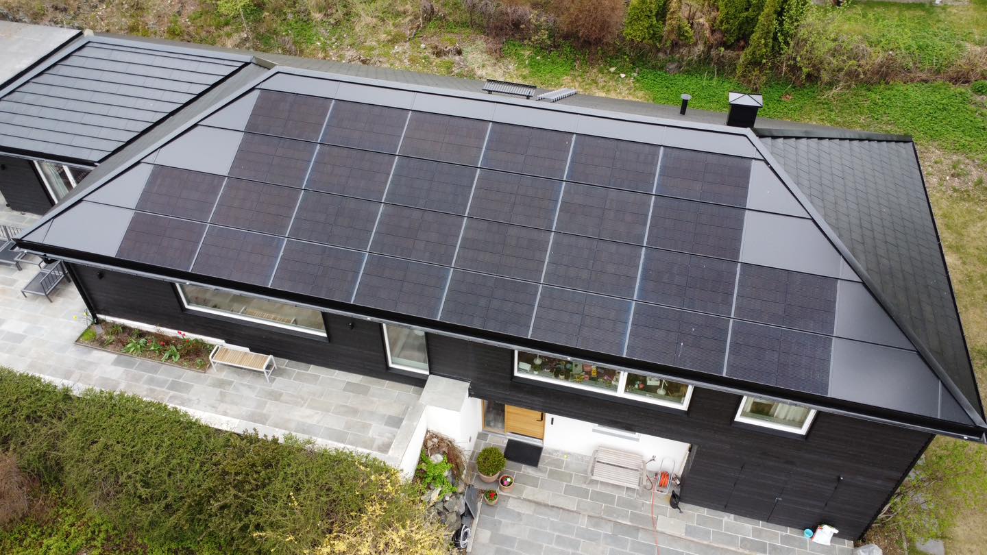 “Vi har et hus fra 1970 der det originale taket var klart for utskifting i fjor. Etter mye tid på google fant vi omsider den løsningen vi mener er den fineste på markedet per i dag, og som Norges tak & Blikk leverer sammen med solenergiselskapet Solintegra. Vi har valmet tak på huset og gikk for Integrert solenergianlegg på takets sydvendte flate, med takplaten Qube fra Benders på øvrige flater. Resultatet har blitt veldig flott.”